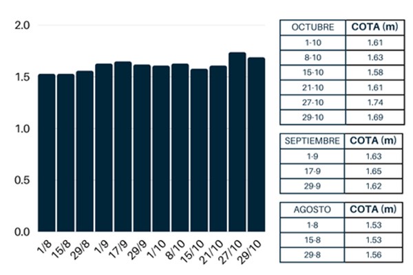 En este espacio publicaremos el nivel de cota de agua de las Lagunas de Puertos para que puedas consultar esta información de forma online y actualizada.
